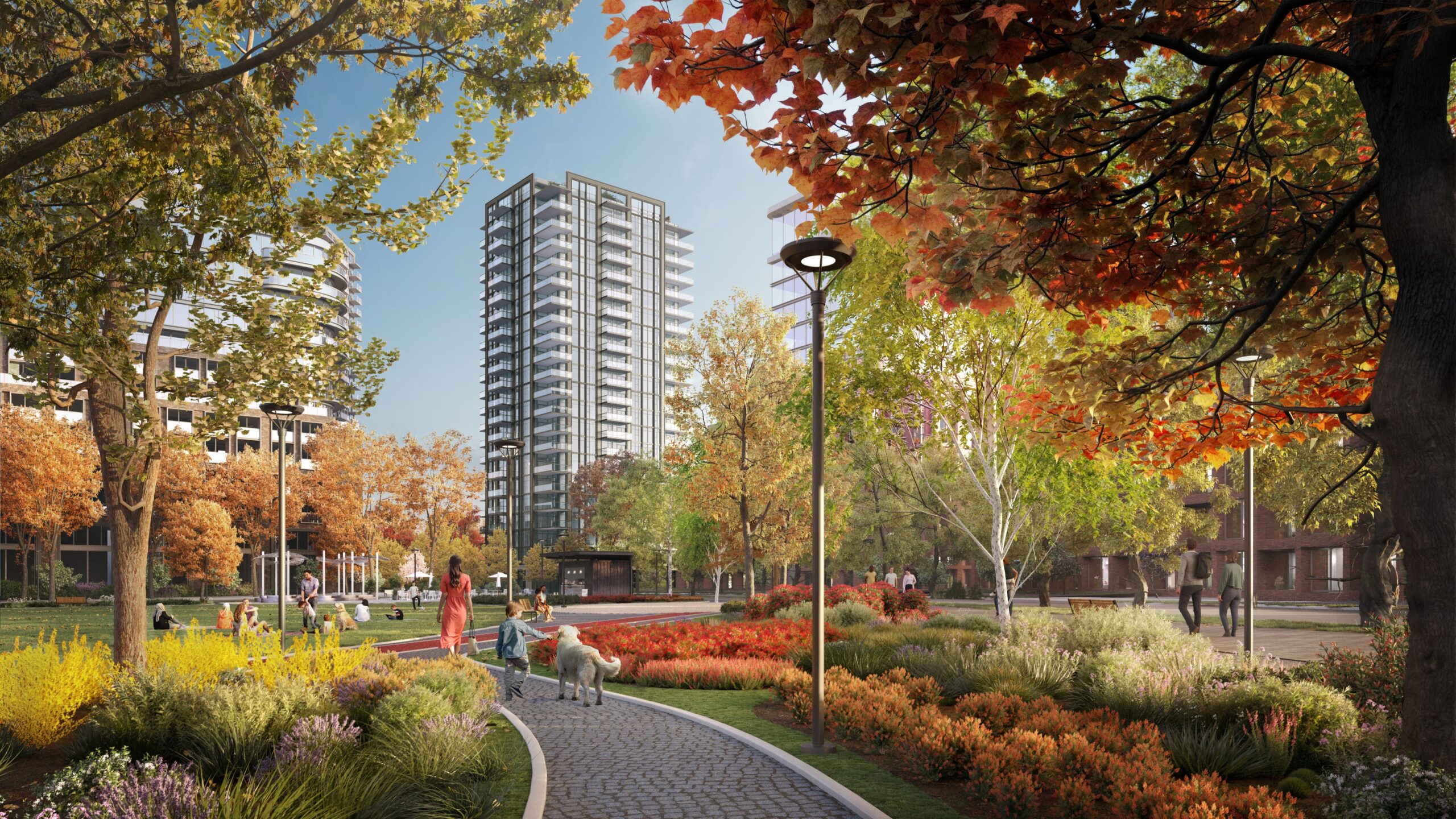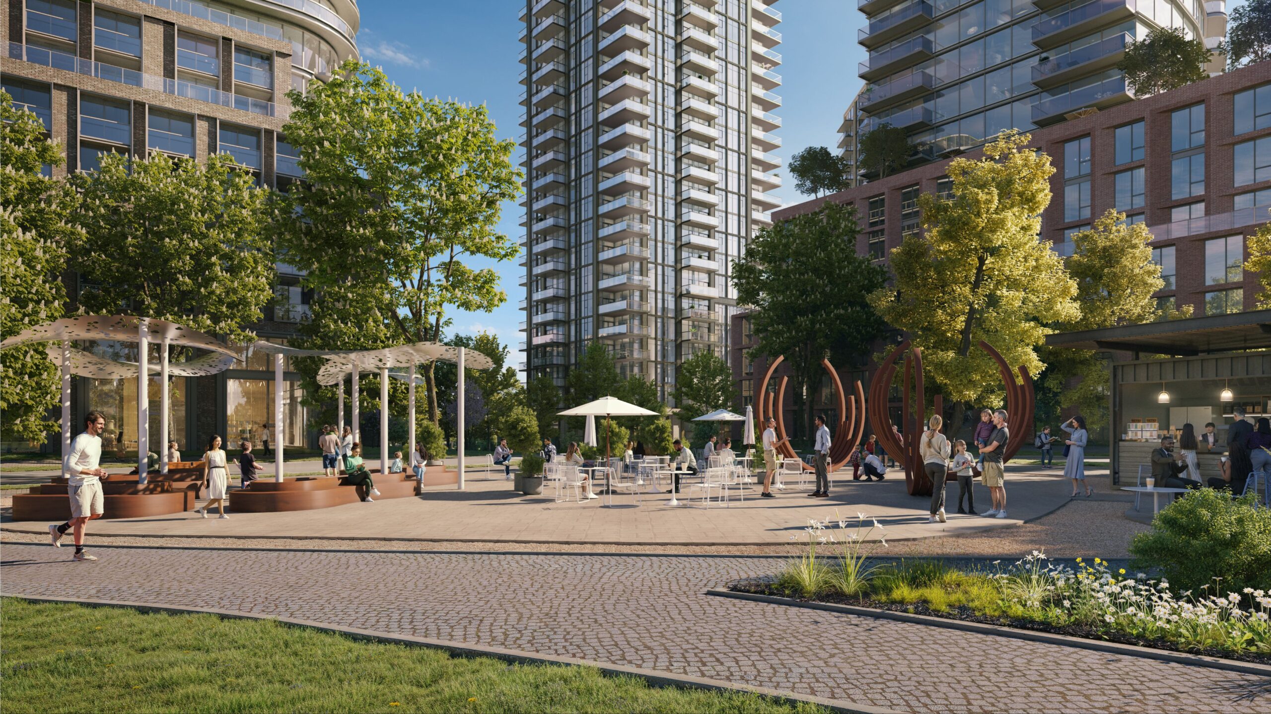 Stroll, jog or picnic in the stunning two-acre park underneath groves of sunlit trees. Curving pathways lead to a myriad of street-level shops at The Mews, while café and bistro seating extend outward toward the park, inviting residents and visitors to stop in and savour the vibrancy of the community.